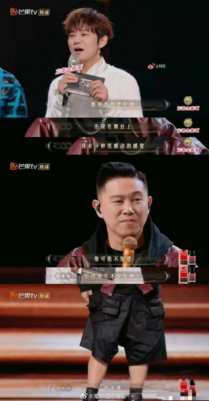 面对众人的疑惑,欧阳靖当场启动“喜剧人防御模式”。他没有辩解,而是突然弯腰,双手利落地将脚踝处的长袜一路拉高至膝盖,并认真展示道:“我的袜子是长的!”试图以此证明自己并非毫无准备,这套“袜子即保暖核心”的无厘头理论,配合他一本正经的表情,瞬间引爆现场笑声。网友惊呼:“长沙降温是没通知欧阳靖本人吗?”“来参加《声生不息》,穿这个短裤就来了?”