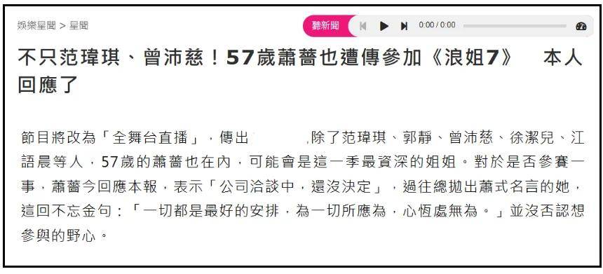 萧蔷接受台媒采访,明确表示公司和节目组进行了洽谈,还没有完全决定,台媒更是直接在标题强调范玮琪等人要参加节目,进一步引发了网友抵制。