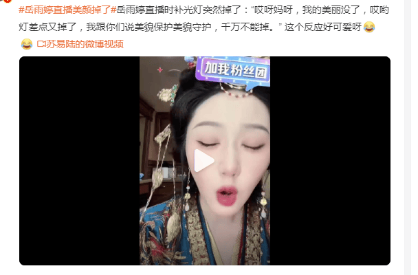 岳雨婷直播美颜掉了!她自嘲美貌守护不能掉被赞好可爱